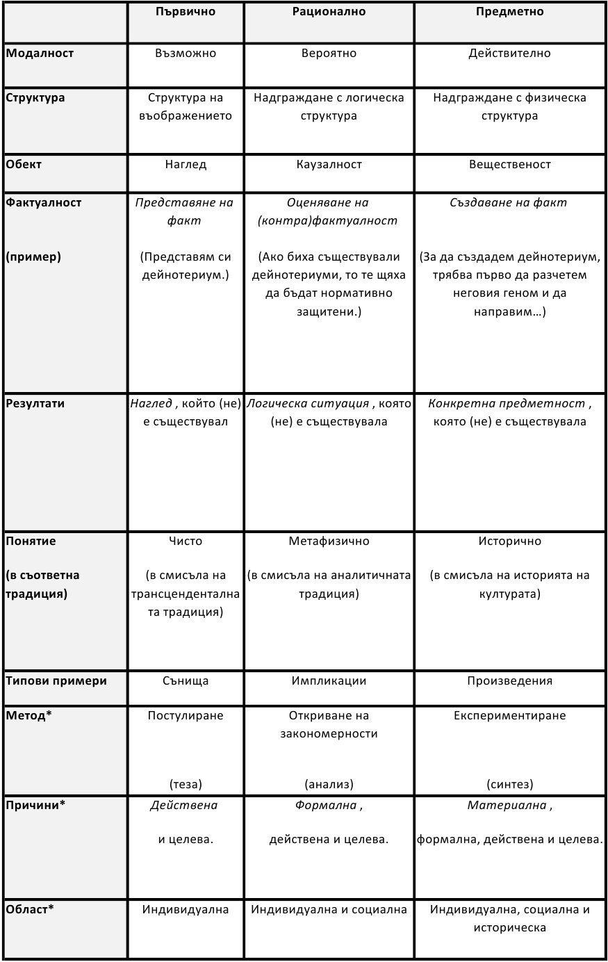 Таблица 1: Трите типа въображение